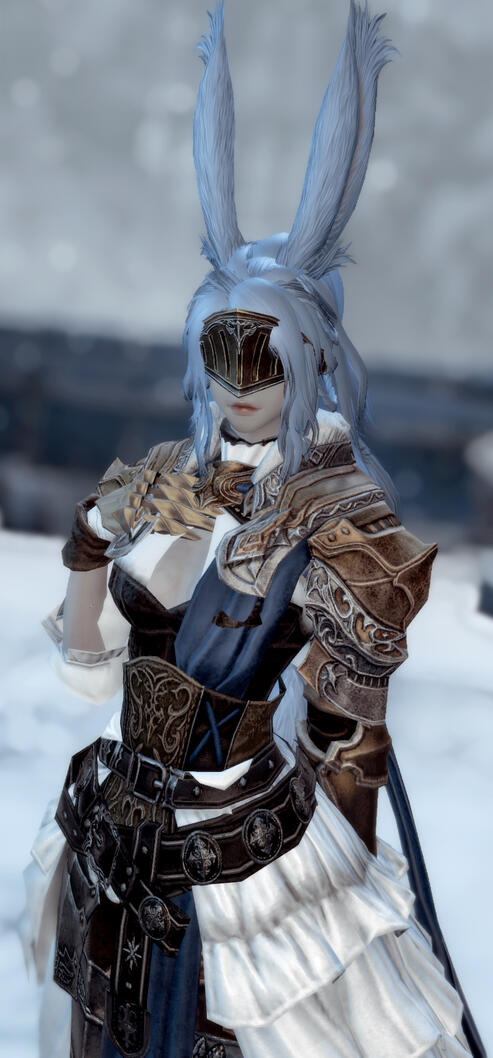 A woman of quiet and commanding presence, Sylviette maintains a strict control of her emotions and actions, as she believes fitting for someone of her (former) station. Of few words and powerful actions, she speaks only when spoken to, and keeps her opinions close to the chest, unless driven to speak by duty or by morals. Rigid and uncompromising, she strikes fast and hard at the heart of evil- those who would harm the innocent or upend the natural order of things for their own gain. To many, she seems a frigid bastion, unapproachable but elegant, but this could not be further from the truth.Underneath all her armor, Sylviette is a deeply kind Viera, with a very strong empathy for all of Eorzea's peoples. She loathes to see others in pain, be it physical or emotional, but lacks the capacity to express this in the typical way. She sees herself as too strange, too odd, to truly fit in with others, and thus puts her lance to use as an expression of herself. She sees her prowess in combat as her one true calling, and tries her best to uphold the virtues of knighthood and chivalry, even if she sees her role in the Dragonsong war as her greatest failure.